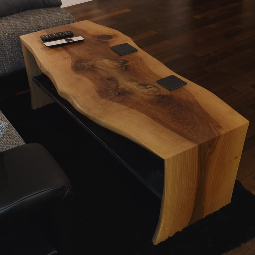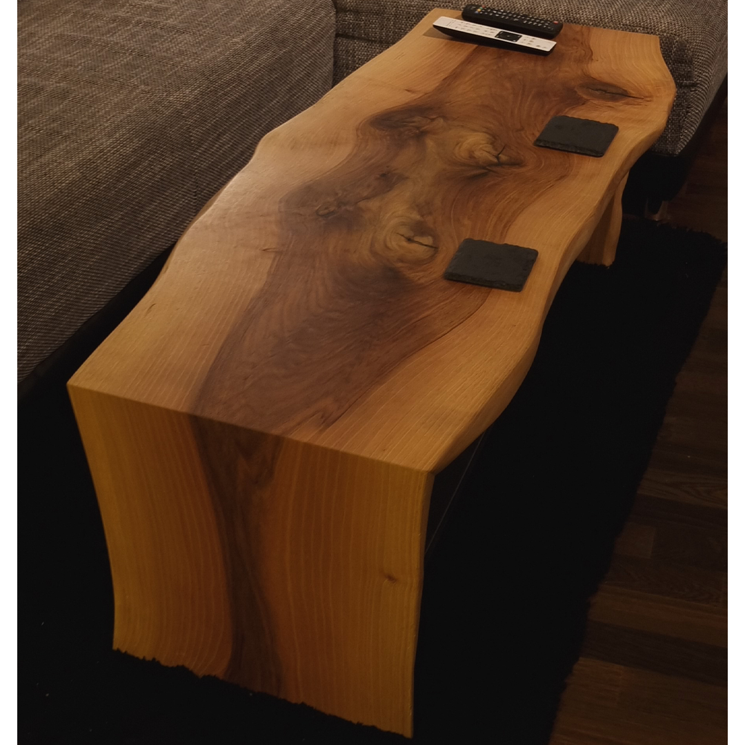 Mit großem handwerklichem Geschick entstand ein einzigartiger Couchtisch. Die Kombination von edlem Nussbaumholz und einer schwarzen MDF-Platte verleiht dem Tisch eine moderne und zeitlose Ästhetik. Die Oberfläche wurde sorgfältig mit Öl behandelt, um ihre natürliche Schönheit zu betonen und langlebigen Schutz zu gewährleisten. Dieser Couchtisch ist nicht nur ein funktionales Möbelstück, sondern auch ein Kunstwerk, das jeden Raum bereichert.